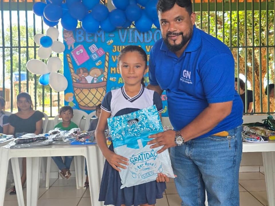 No dia 30/04/2025, o Grupo Norte prestigiou a Comunidade Santa Maria com a entrega de cadernos, estojos, bolas de futebol, mochilas e tantos outros materiais escolares.